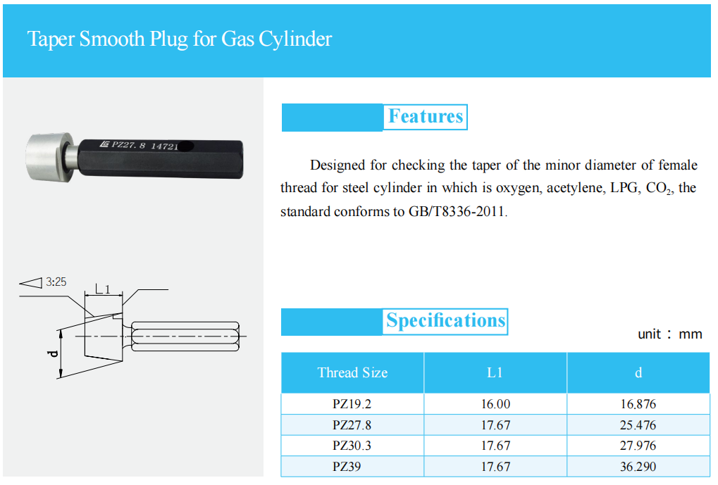 > PZ-NGT Taper Smooth Plug for Gas Cylinder