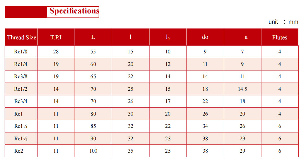 > 55° Taper Pipe Thread Tap for Ductile Iron
