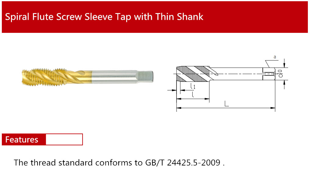 Spiral Flute Screw Sleeve Tap with Thin Shank