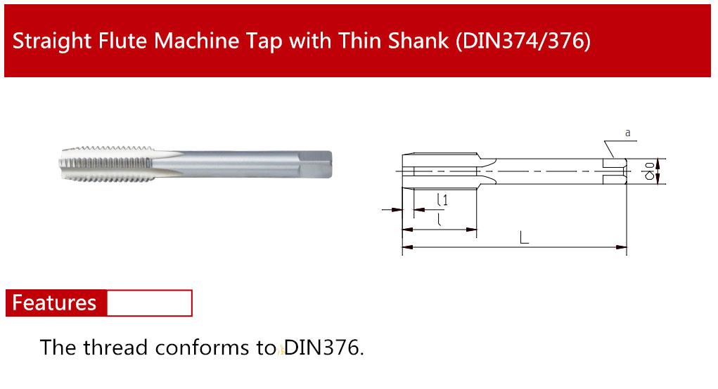 Straight Flute Machine Tap with Thin Shank (DIN374-376)