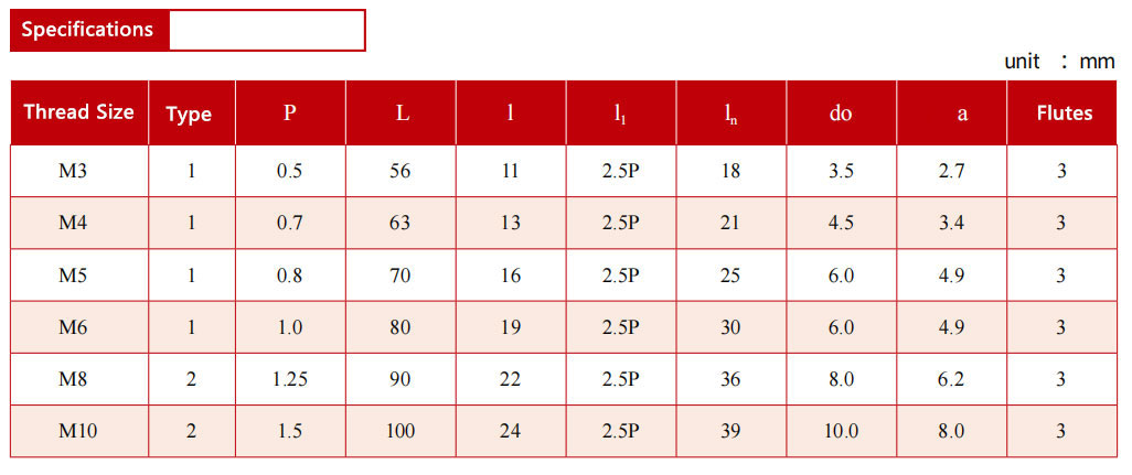 > Spiral Flute Machine Tap with Thick Shank (DIN371)
