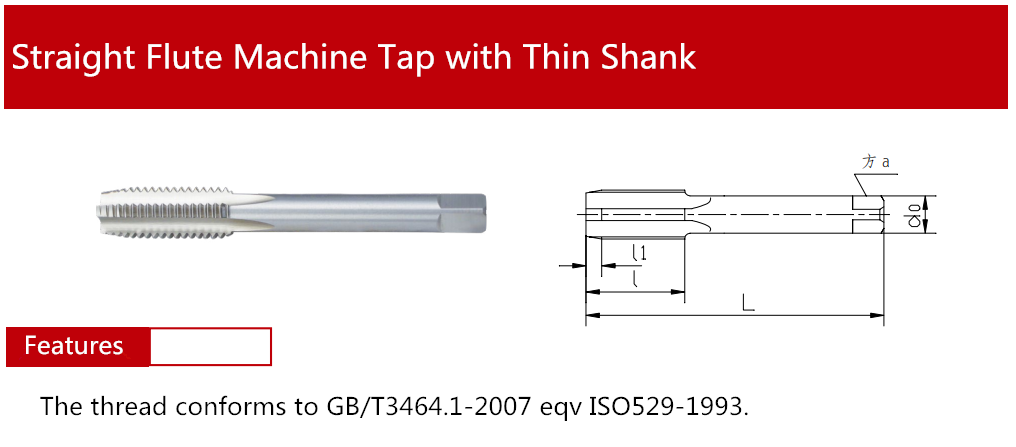 > Straight Flute Machine Tap with Thin Shank