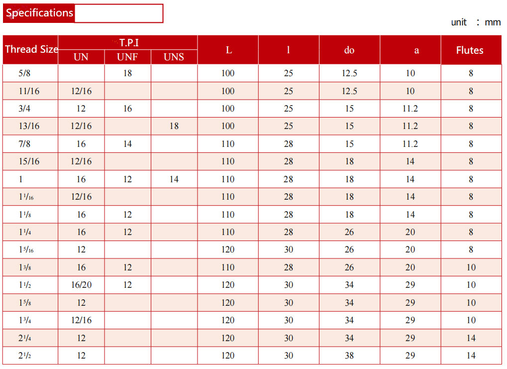 > UN-UNF-UNS Unified Extruding Tap for Filter