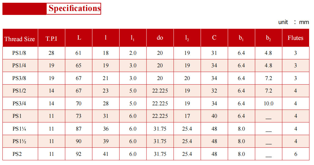 PS Straight Pipe Thread Tap with Cylinder Shank with Keyslot