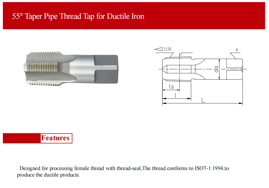 > 55° Taper Pipe Thread Tap for Ductile Iron