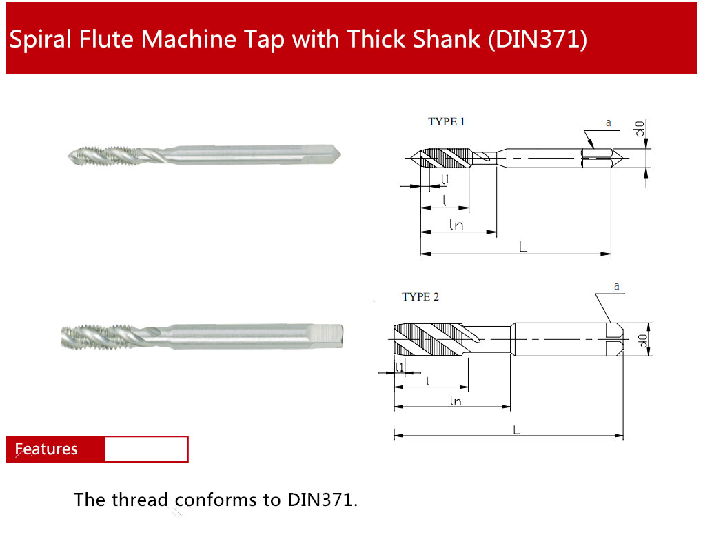 > Spiral Flute Machine Tap with Thick Shank (DIN371)