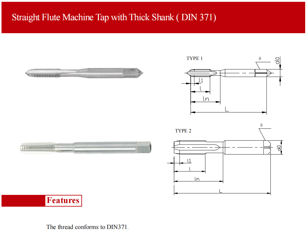> Straight Flute Machine Tap with Thick Shank ( DIN 371)
