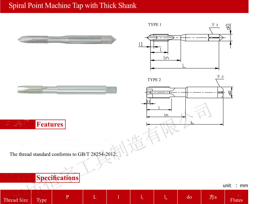 Next article:Spiral Flute Machine Tap with Thin Shank (Short Thread)